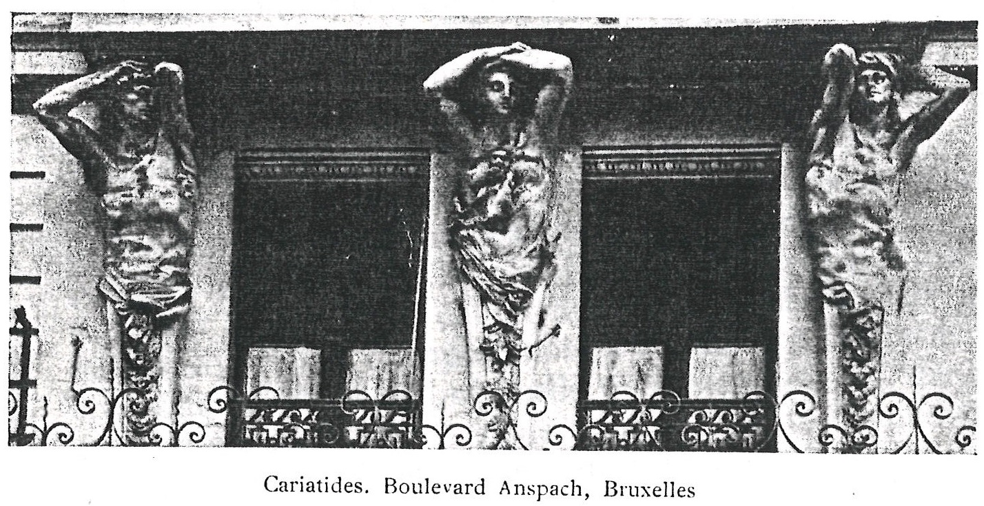 「ブリュッセルで見られるロダンの最高傑作は、グレトリー街とアンスパック大通りの交差する西側両角に位置する二つの建物のバルコニーを支えている6体のカリアティードである。」